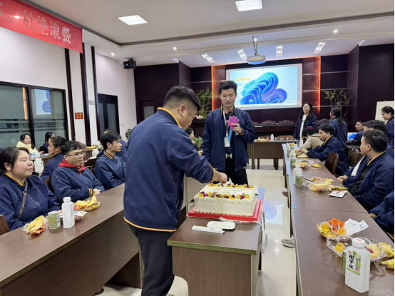 許愿吹蠟燭后,在場(chǎng)的主管們主動(dòng)化身“服務(wù)員”,細(xì)心地為每一位壽星和同事分發(fā)蛋糕。大家品嘗著甜蜜的蛋糕,分享著生日的喜悅,臉上洋溢著幸福的笑容。